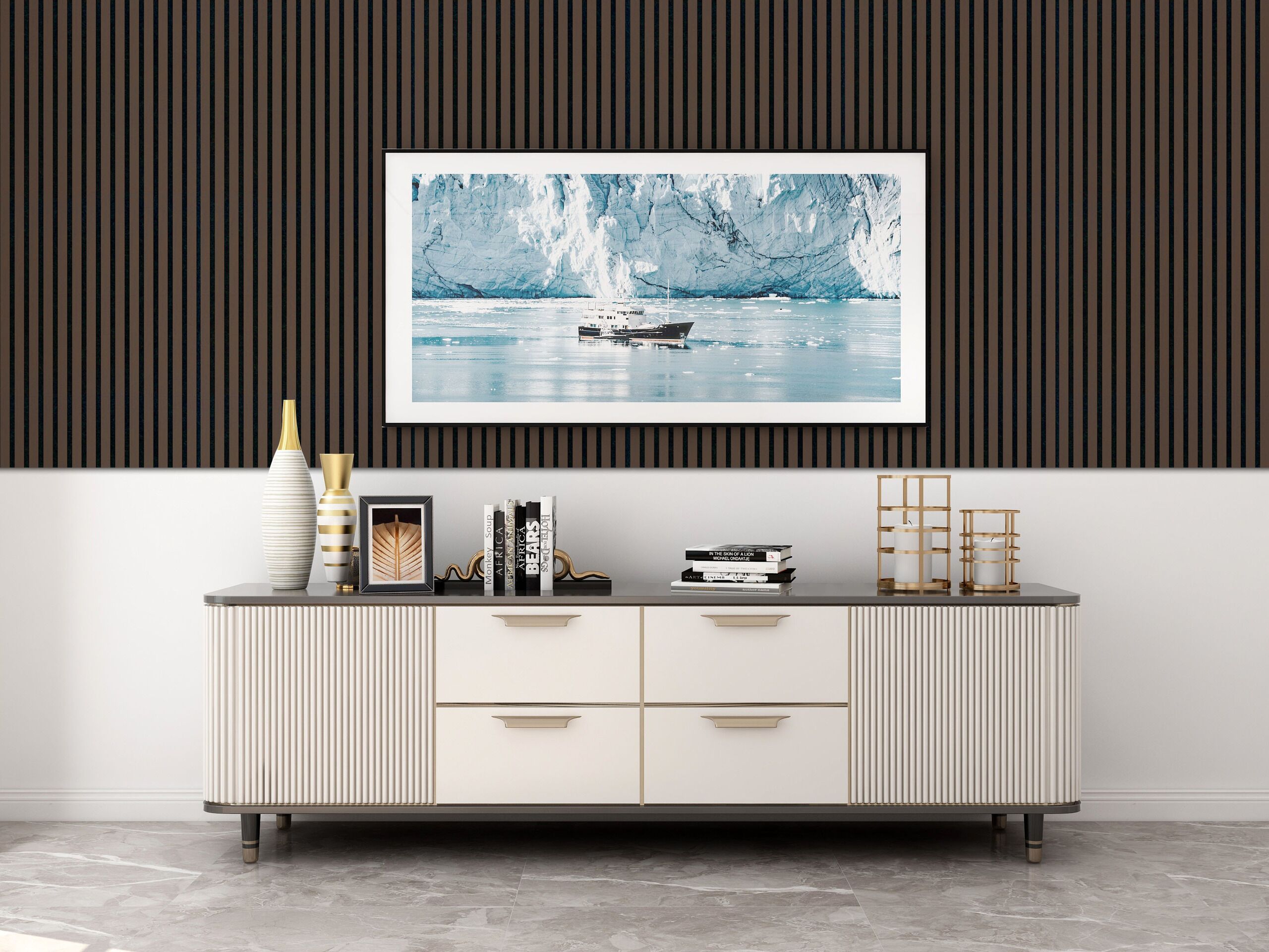 Acoustic Wood Slat Panel (Black Walnut) 600mm(w) x 2400mm(h)