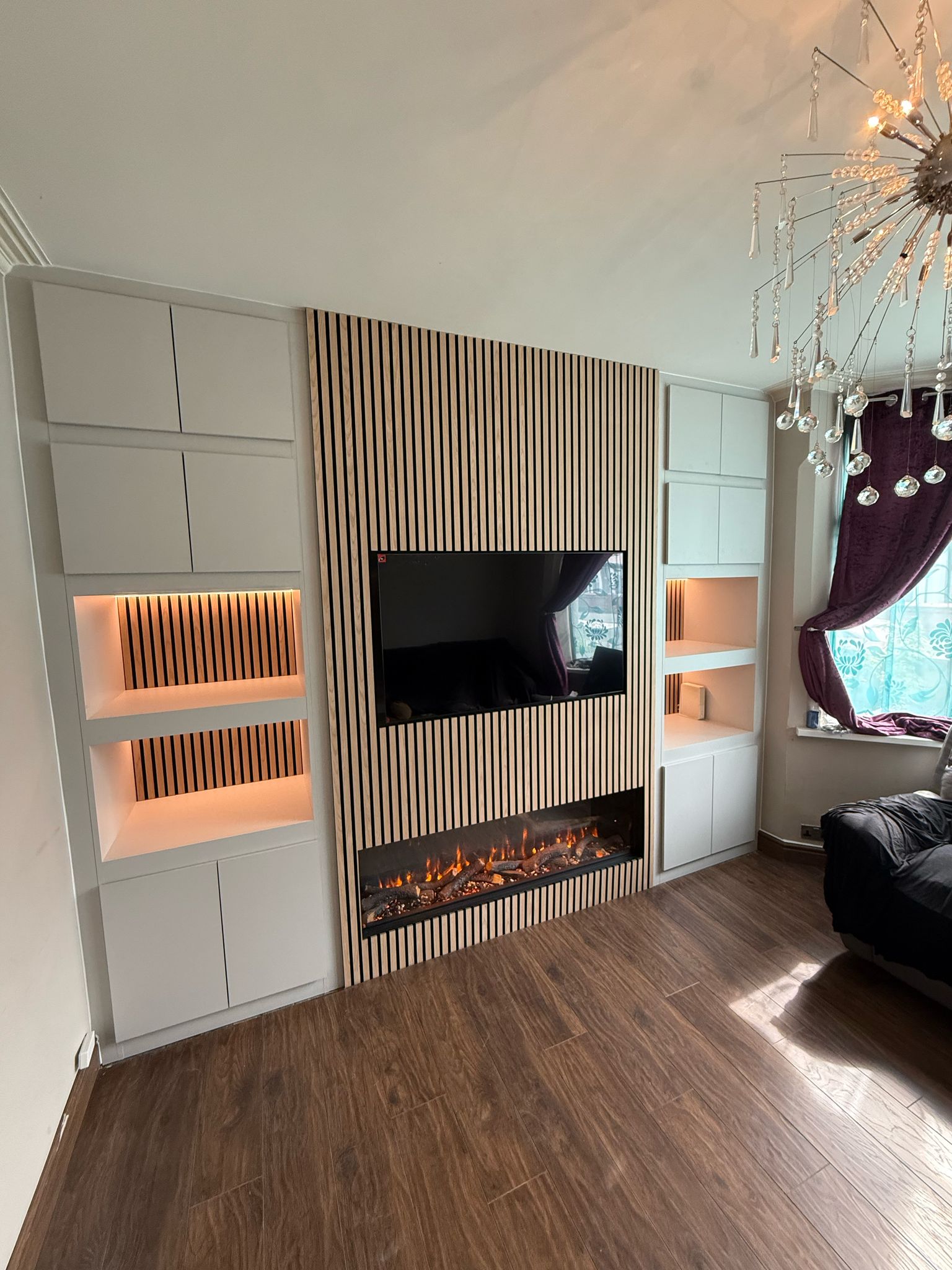 - Shelving Areas (With Woodslat Backing & LED Smart Lighting)